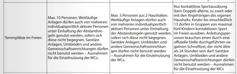 Tennisplätze | Inzidenz unter 50 | Inzidenz unter 100 | Inzidenz über 100